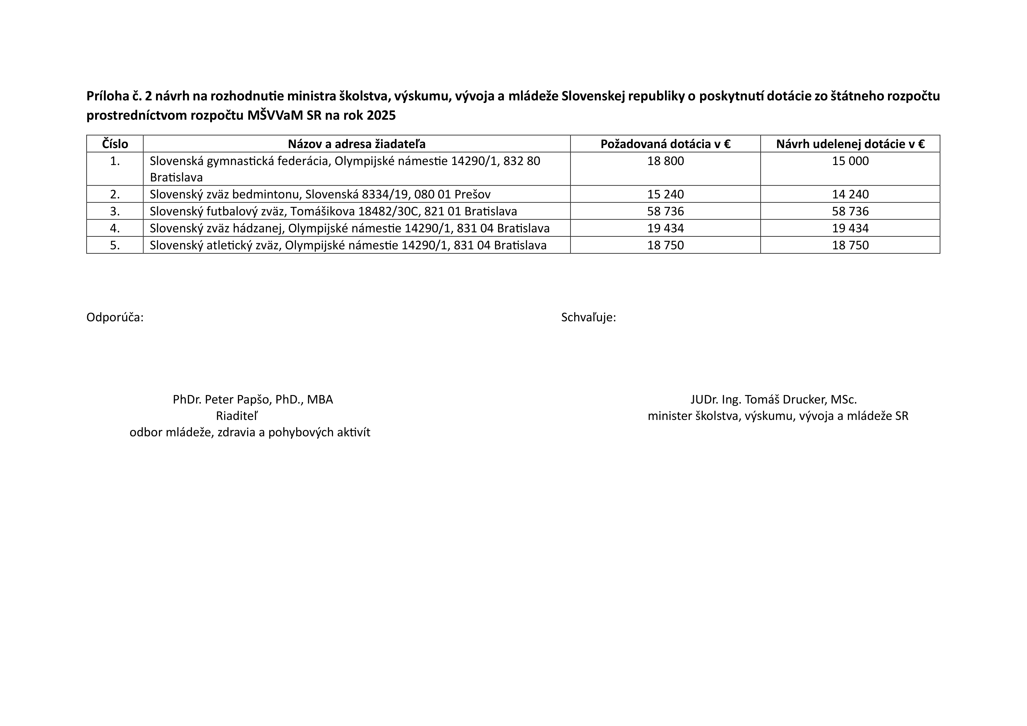 Rozhodnutie ministra Súbory na stiahnutie Rozhodnutie ministra 18.06.2025 (.png, 229.92 kB) 18.06.2025 Rozhodnutie ministra 17.04.2025 (.png, 183.46 kB) 17.04.2025 Rozhodnutie ministra 01.04.2025 (.png, 184.78 kB) 01.04.2025